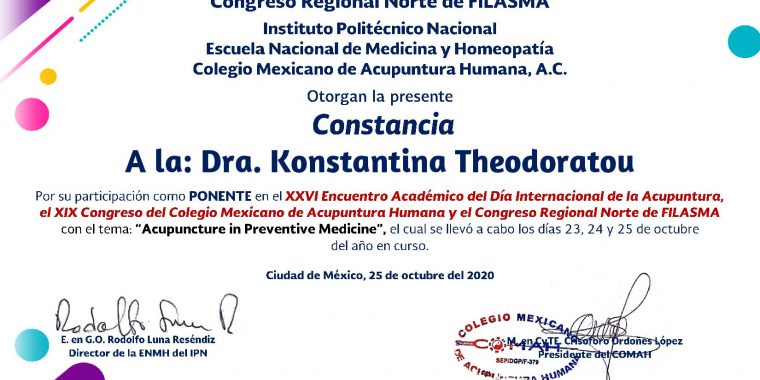 Ομιλία στο ΧΧΧΙ Συνέδριο Βελονισμού Τσεχίας και Σλοβακίας – Σεπτέμβριος 21